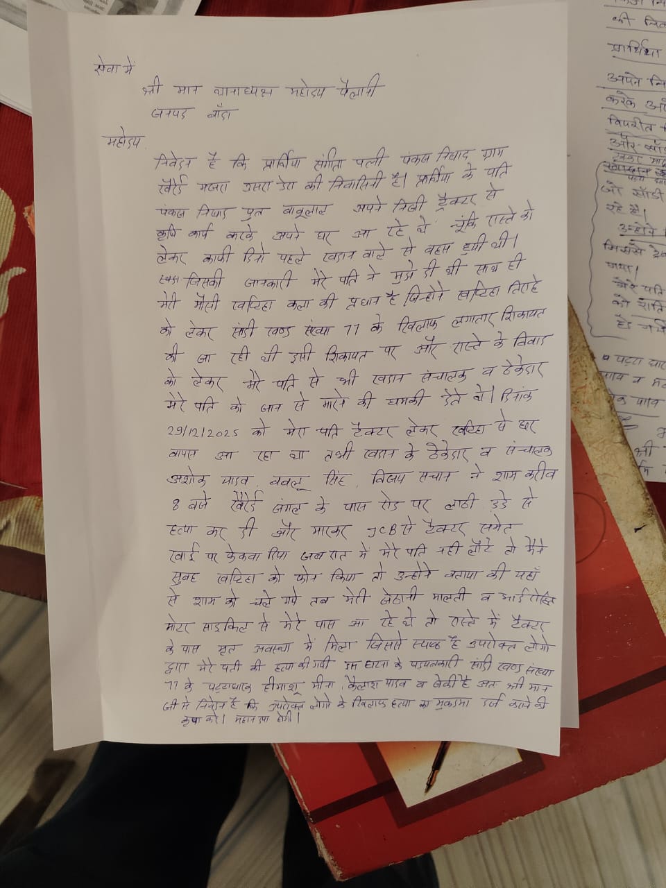 - मृतक पंकज की पत्नी संगीता ने पैलानी थाने मे दी है लिखित तहरीर।